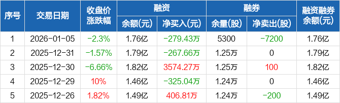 风范股份:融资净偿还279.43万元,融资余额1.76亿元(01-05)
