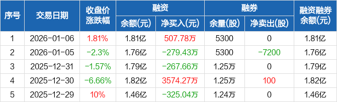 风范股份:融资净买入507.78万元,融资余额1.81亿元(01-06)