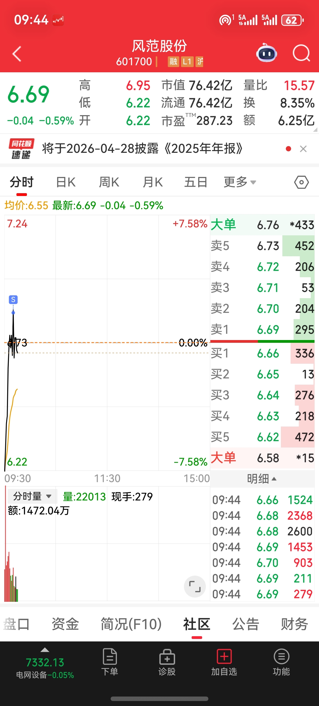 $风范股份(SH601700)$ 今天计算涨停,我也不眼红,以为要割肉了,没想到喝了口汤走的,感谢抄底的兄弟们