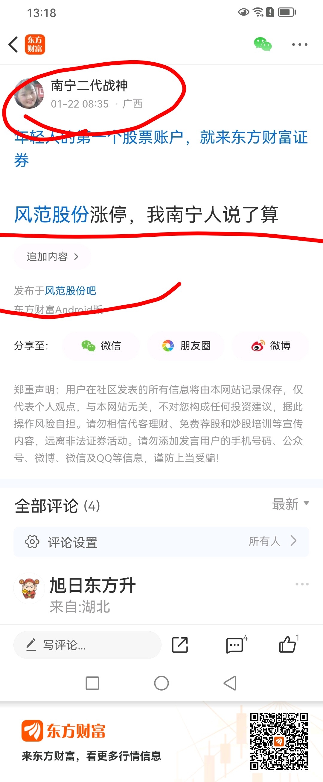 温馨提示: 1.根据《证券法》规定,禁止编造、传播虚假信息或者误导性信息,扰乱证券市场;2.用户在本社区发表的所有资料、言论等仅代表个人观点,与本网站立场无关,不对您构成任何投资建议。用户应基于自己的独立判断,自行决定证券投资并承担相应风险。《东方财富社区管理规定》