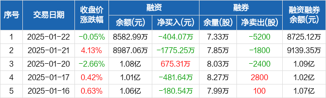华峰铝业:融资净偿还404.07万元,融资余额8582.99万元(01-22)
