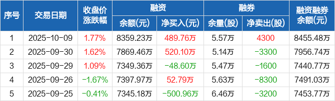华峰铝业:融资净买入489.76万元,融资余额8359.23万元(10-09)