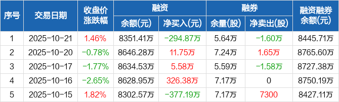 华峰铝业:融资净偿还294.87万元,融资余额8351.41万元(10-21)