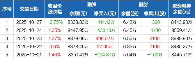 华峰铝业:融资净偿还114.12万元,融资余额8333.83万元(10-27)