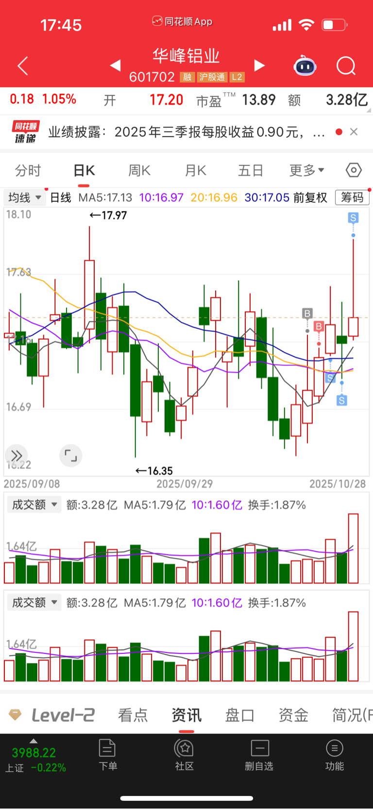 $华峰铝业(SH601702)$ 这票就不能格局,小赚一点,留个底仓。