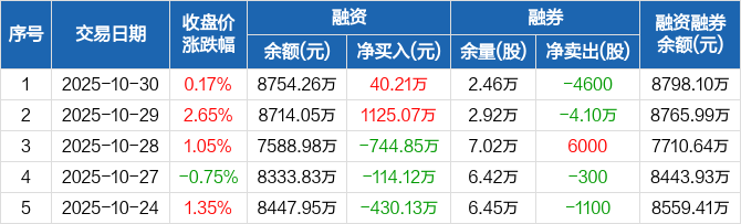 华峰铝业:融资净买入40.21万元,融资余额8754.26万元(10-30)