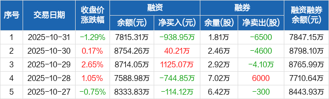 华峰铝业:融资净偿还938.95万元,融资余额7815.31万元(10-31)