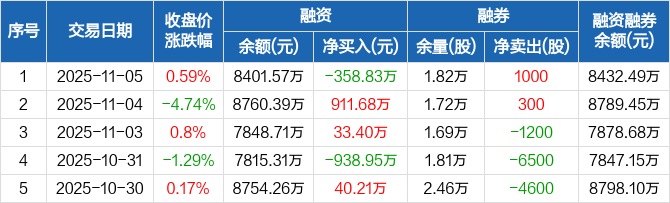 华峰铝业:融资净偿还358.83万元,融资余额8401.57万元(11-05)