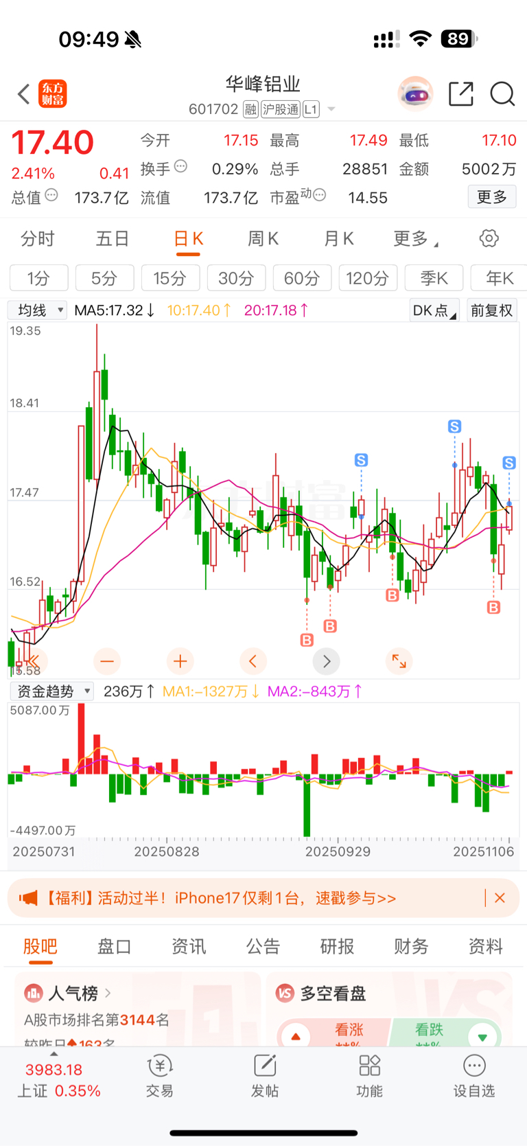 $华峰铝业(SH601702)$ 赚个早饭钱