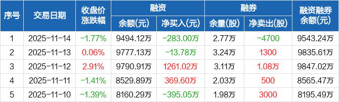 华峰铝业:融资净偿还283万元,融资余额9494.12万元(11-14)