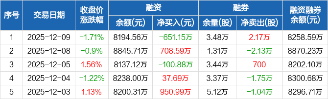 华峰铝业:融资净偿还651.15万元,融资余额8194.56万元(12-09)
