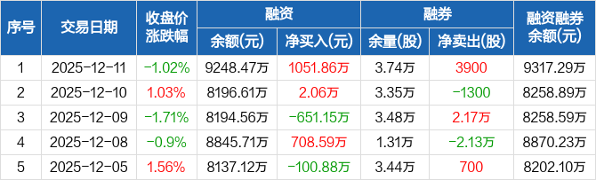 华峰铝业:融资净买入1051.86万元,融资余额9248.47万元(12-11)