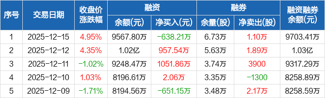 华峰铝业:融资净偿还638.21万元,融资余额9567.8万元(12-15)