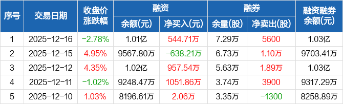华峰铝业:融资净买入544.71万元,融资余额1.01亿元(12-16)