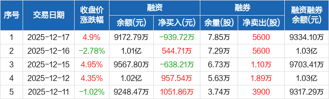 华峰铝业:融资净偿还939.72万元,融资余额9172.79万元(12-17)
