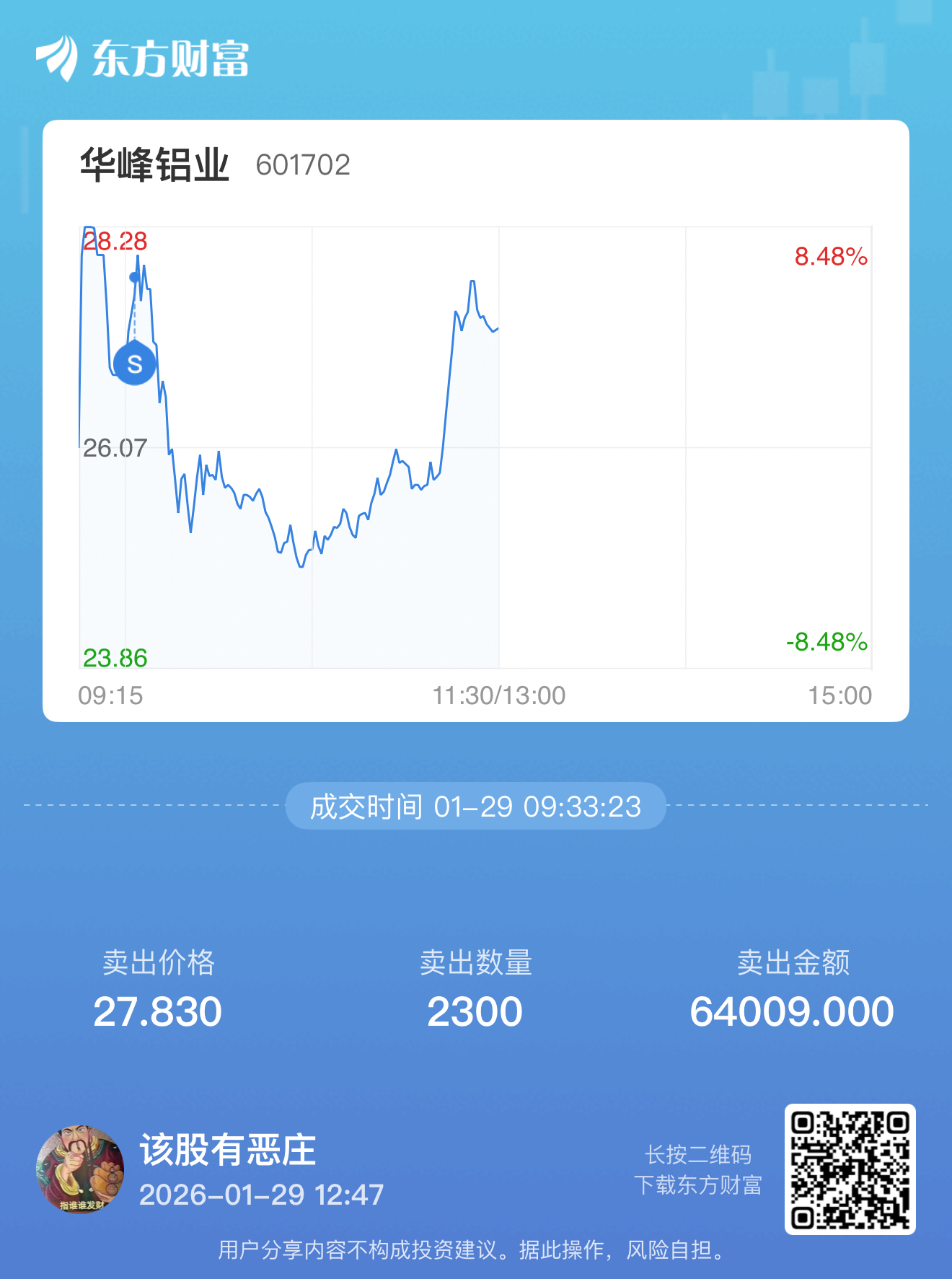 $华峰铝业(SH601702)$ 清仓,感谢主力大哥带我吃肉,祝主力大哥今年发大财