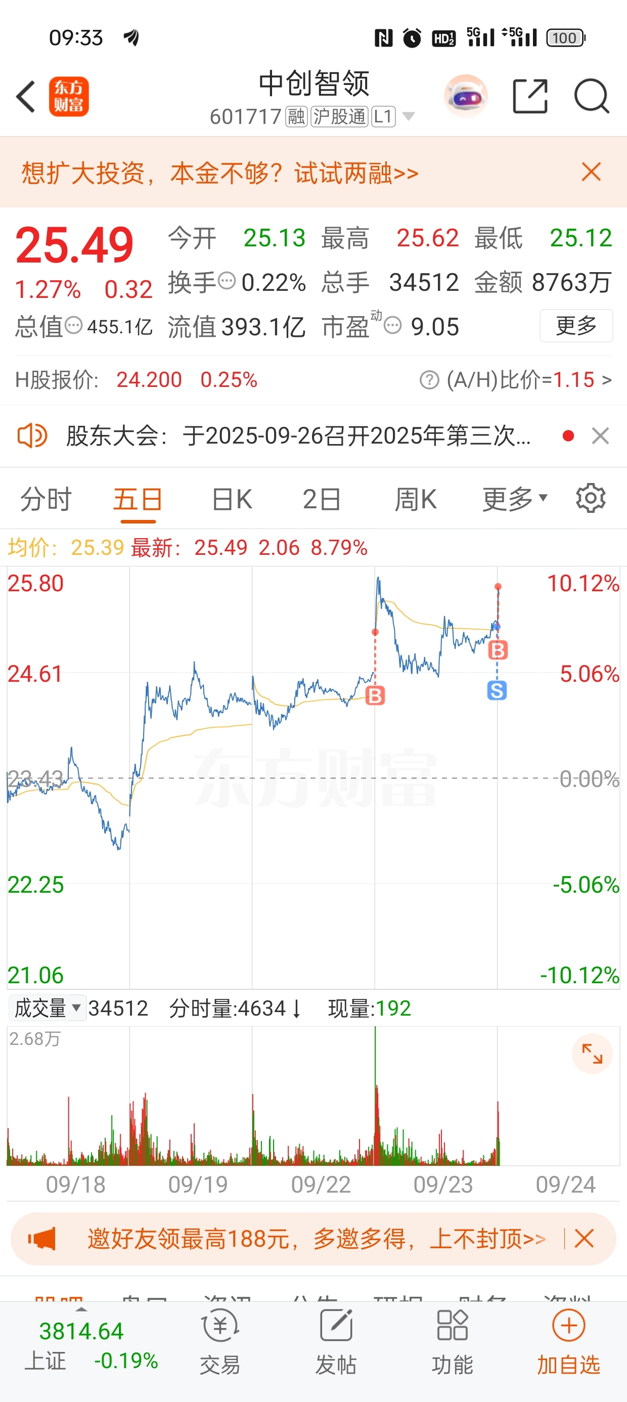 $中创智领(SH601717)$ 我亏钱可以,但是也看不了他继续涨,本来昨天买了200股,今天低开我以为买崩了就卖了,又拉是吧?那我追高,必须把你买崩,眼红难受,看不得你一点好,我就不信我有100股,锁仓不动了,你不跌我?