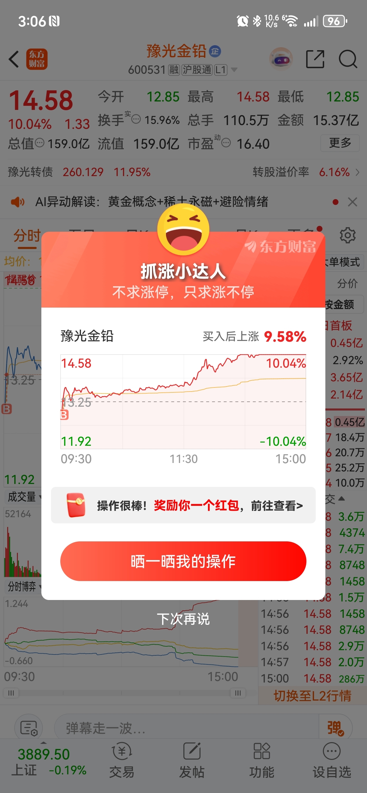 今天没有买中创食言了。情况就是这么个情况,总不能和钱过不去吧。抱歉了