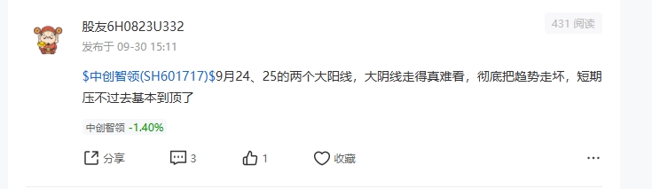 $中创智领(SH601717)$ 节前已经提示过这个股走出乌云盖顶之势,形态彻底走坏了,短期如果没有特别重大利好难以改变下跌之势,炒股不能一味听别人吹,人家吹是有钱拿,本金才是自己的,不要相信什么价值投资的鬼话,低估值不涨就他几个知道?为什么没有资金看上,各位自己心里想想