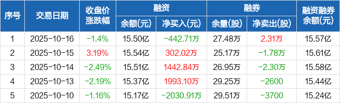 中创智领:融资净偿还442.71万元,融资余额15.5亿元(10-16)