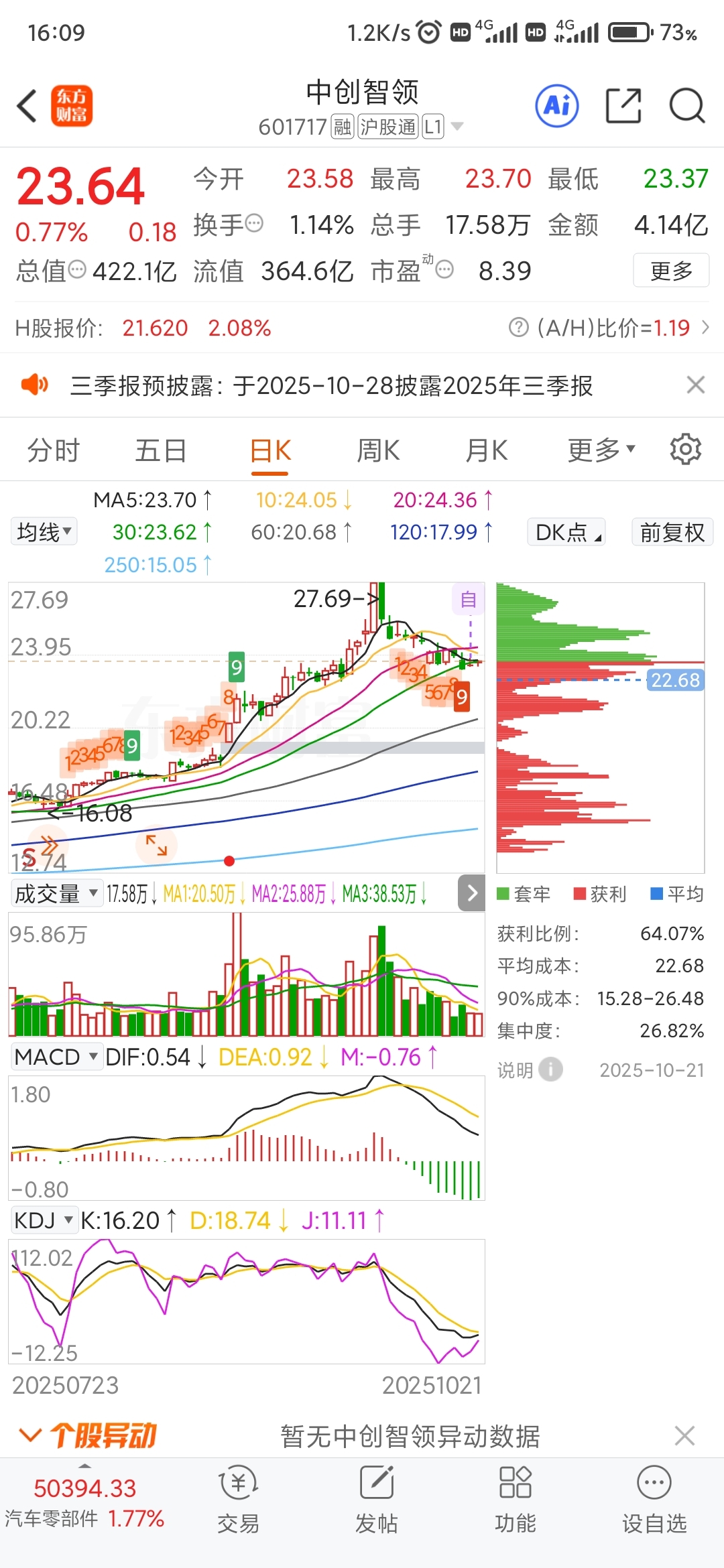 $中创智领(SH601717)$ 今天大盘这么强都不涨,你还想等大盘回调他能涨?都没量涨了,目前依旧没有站稳,等什么时候均线交叉向上才是买点,不然一个放量下砸就是一根大阴线#收盘点评# #复盘记录# #炒股日记# #实盘记录#
