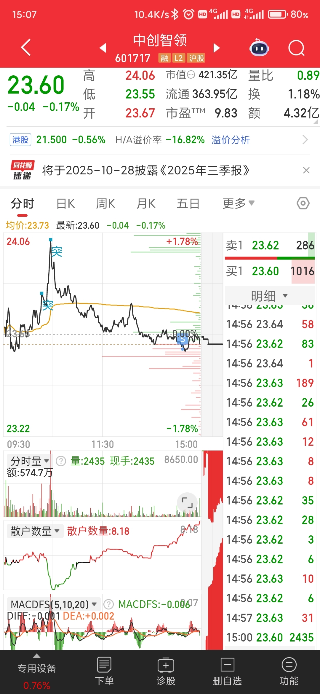 $中创智领(SH601717)$ 今天上午借大盘下跌假拉一波,然后用大单往下砸,大盘红了他反而下跌,就是诱多,30日线直接砸穿,预计三季报是真不及预期,所以持续减仓#收盘点评# #复盘记录# #实盘记录# #炒股日记#
