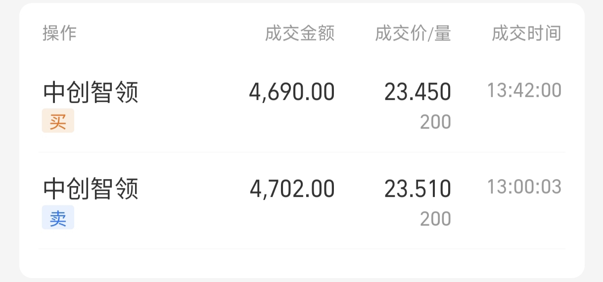 $中创智领(SH601717)$ 老师今日做T是赚了的!