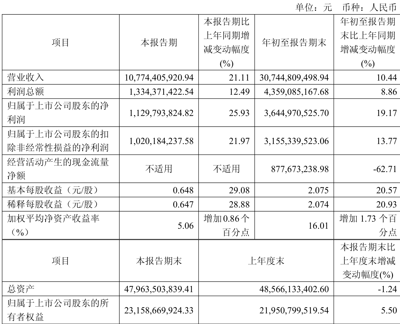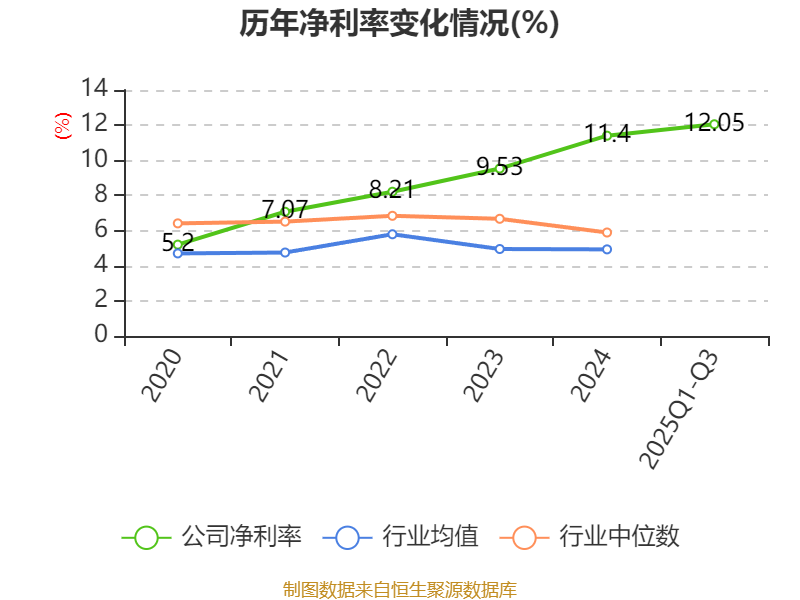 盈利能力方面, 2025年前三季度公司加权平均净资产收益率为16.01%,同比上升1.73个百分点。公司2025年前三季度投入资本回报率为12.49%,较上年同期上升1.4个百分点。