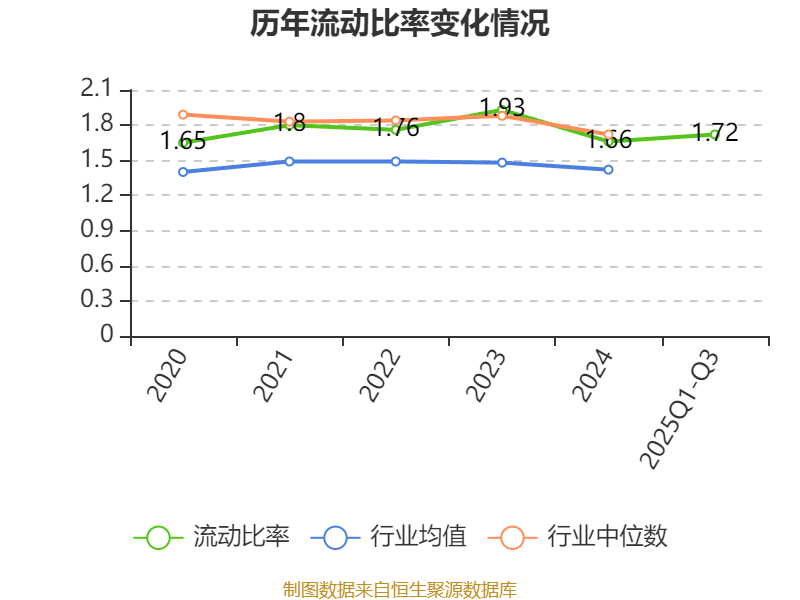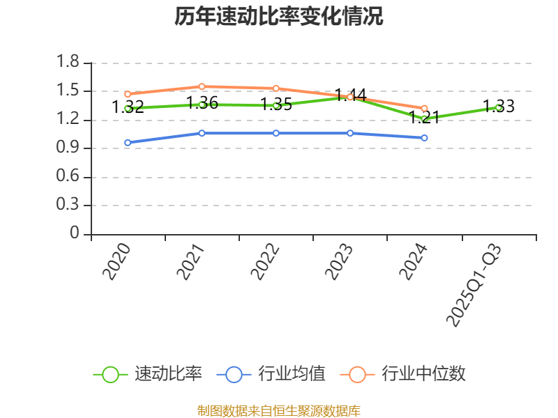 2025年前三季度,公司流动比率为1.72,速动比率为1.33。