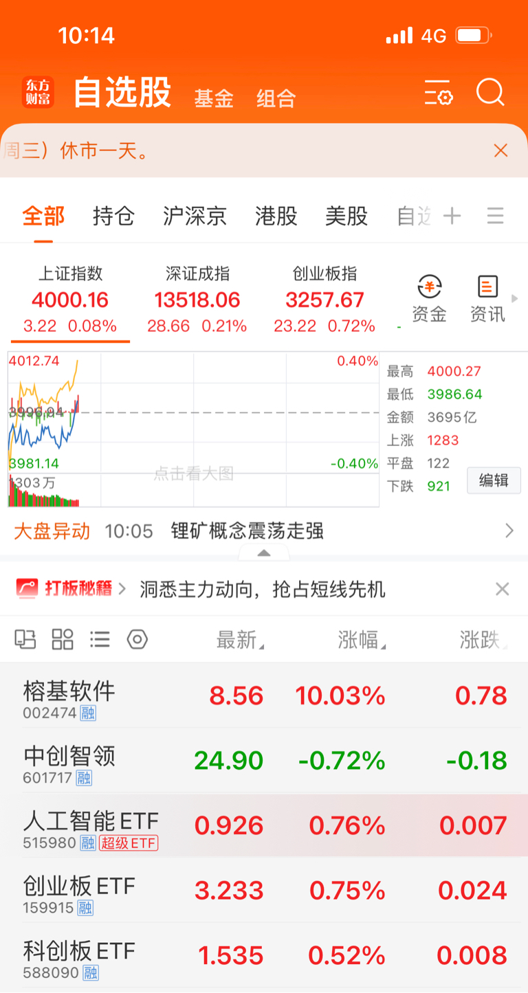 $中创智领(SH601717)$ 记录一下大盘4000点中创表现