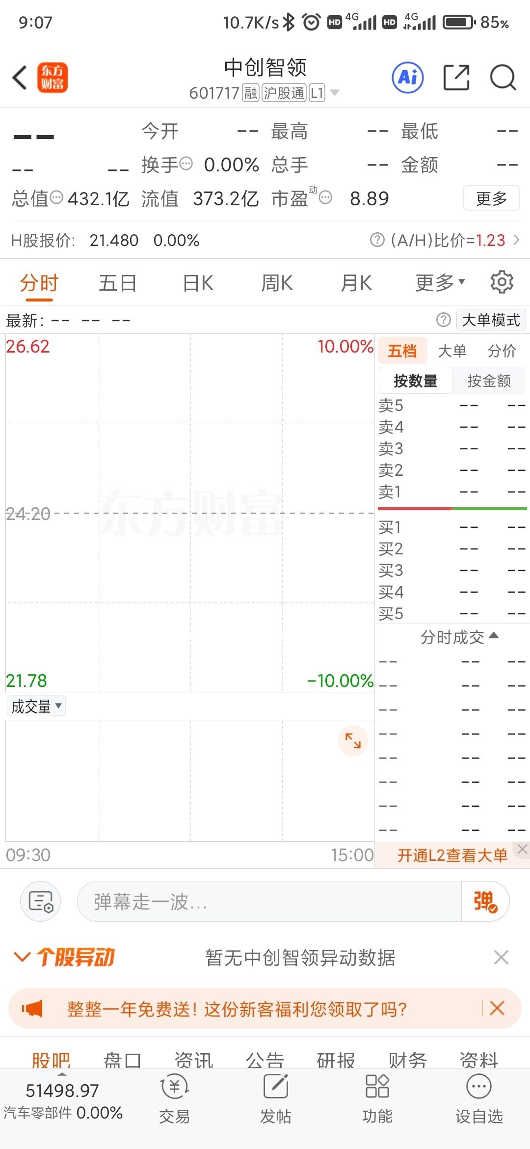 $中创智领(SH601717)$ 总值432.1亿,你说会不会到321.0市值,又有人开始吹涨停了,那今天又能绿了,投值投资第45天,本来成本2块钱,上个月亏了5个点,成本变2.2了