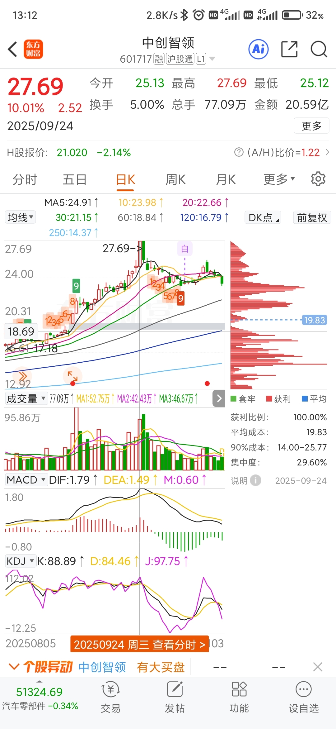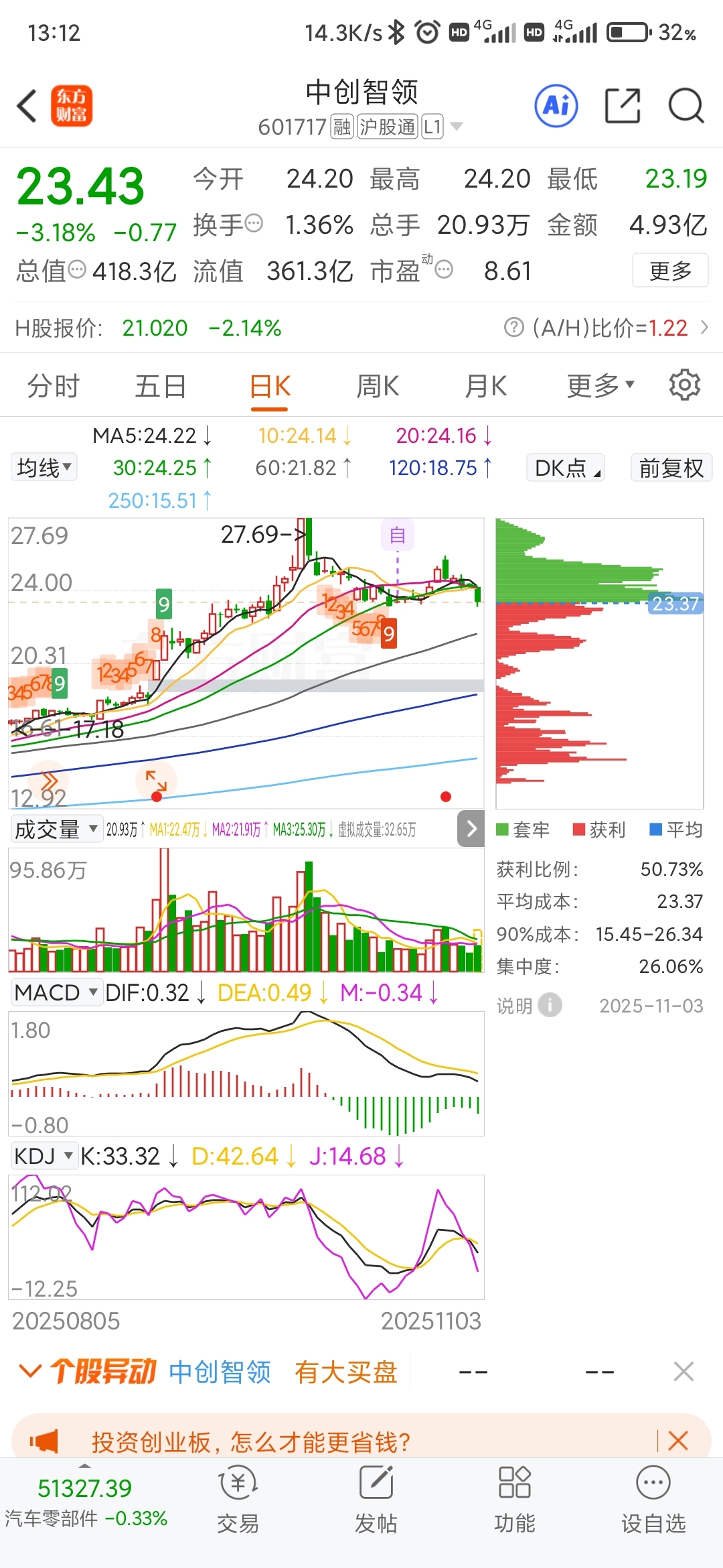 $中创智领(SH601717)$ 看看获利盘一直在出,底下筹码快出了一半了,还有人在吹锁仓的,是真搞笑,要是我,我也融资空,反正只要大盘涨,那你准备好中创百分之八十绿,大盘绿,那么中创百分之九十五是绿