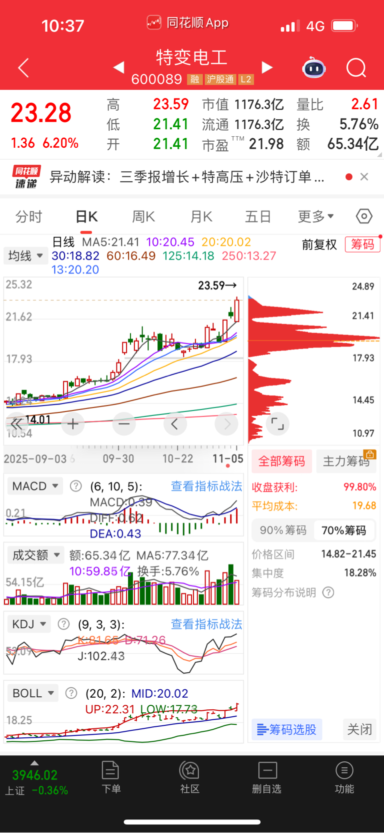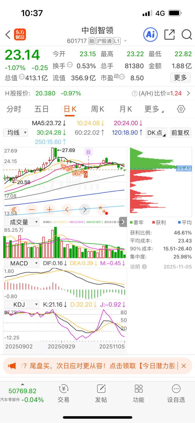 $中创智领(SH601717)$ 人家是往上的,他是不断往下走