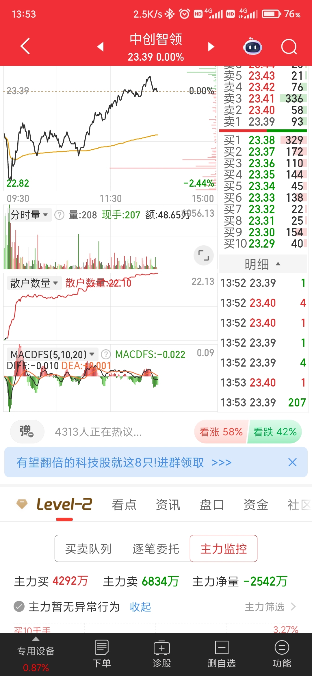 $中创智领(SH601717)$ 别想了,近来没有上涨动力了,马上绿了,目前看到21.8看能不能止跌