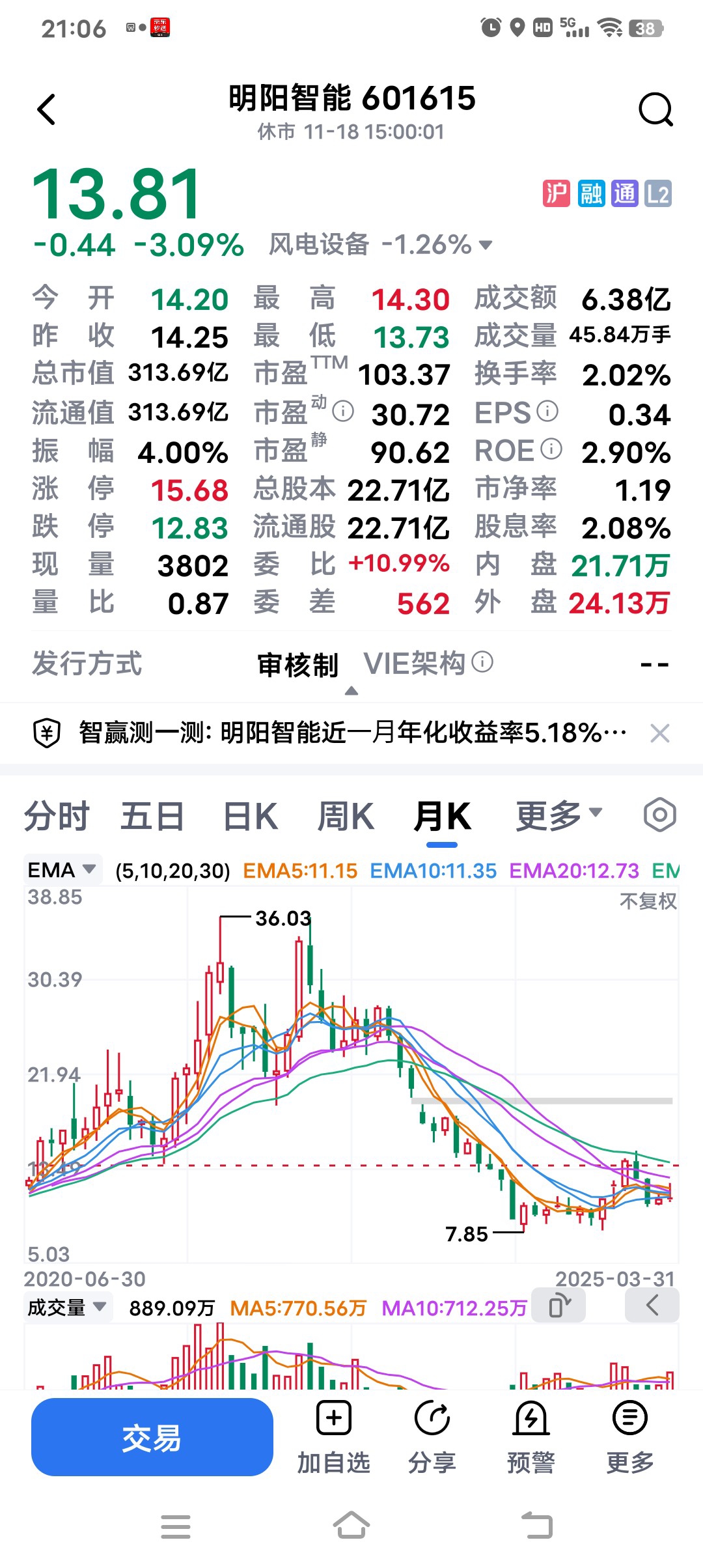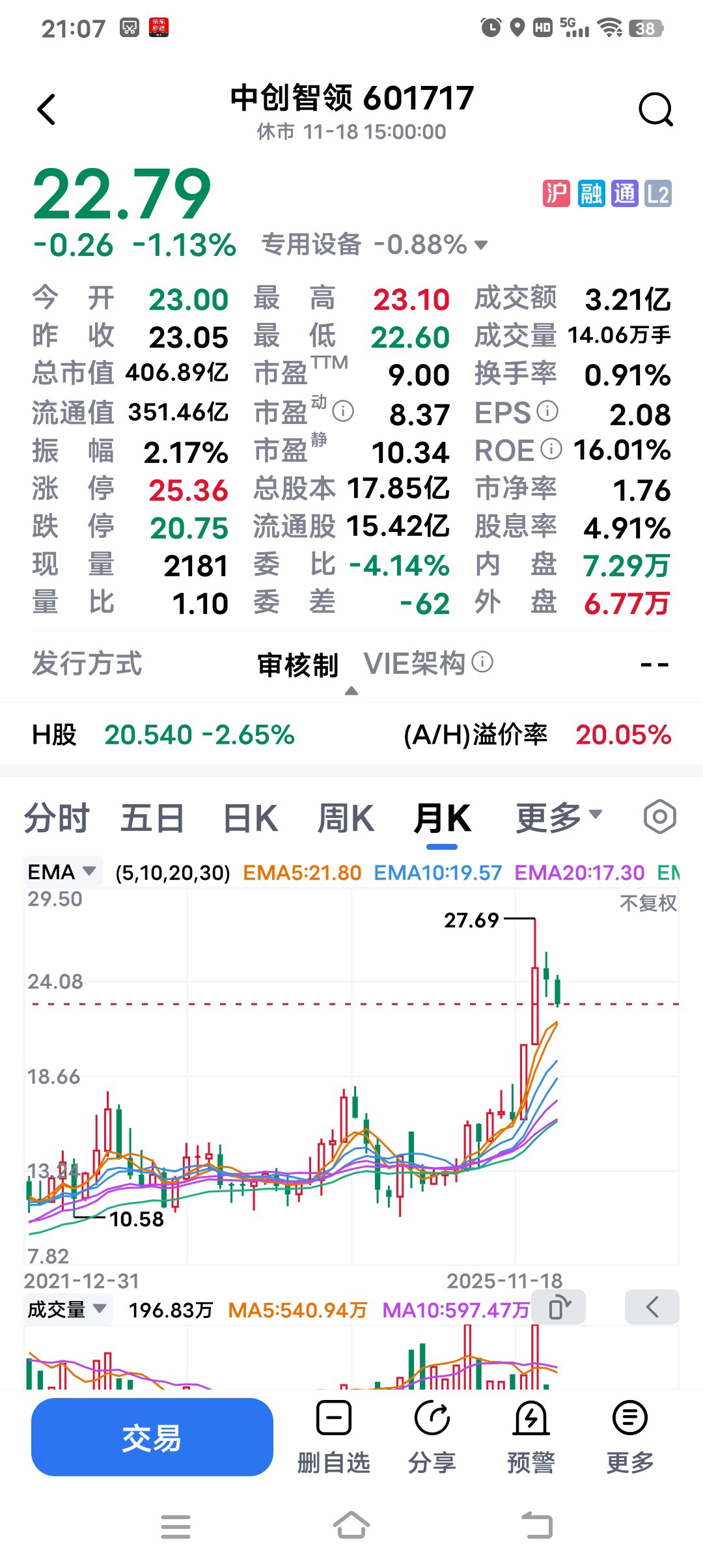 $中创智领(SH601717)$ 篮子里只有一个鸡蛋,现在唯一的持仓股票。从涨到高点27.69和跌到今天的22.79,期间很少去操作。如今盈利已大幅缩水,甚至一直不敢去看账户。要做到逃顶和抄底非常困难,但躺平不动就是所谓的长线投资么?我曾经操作过601615明阳智能,从盈利到大亏7万多割肉,我真的害怕重蹈覆辙……