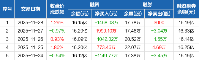 中创智领:融资净偿还1468.08万元,融资余额16.15亿元(11-28)
