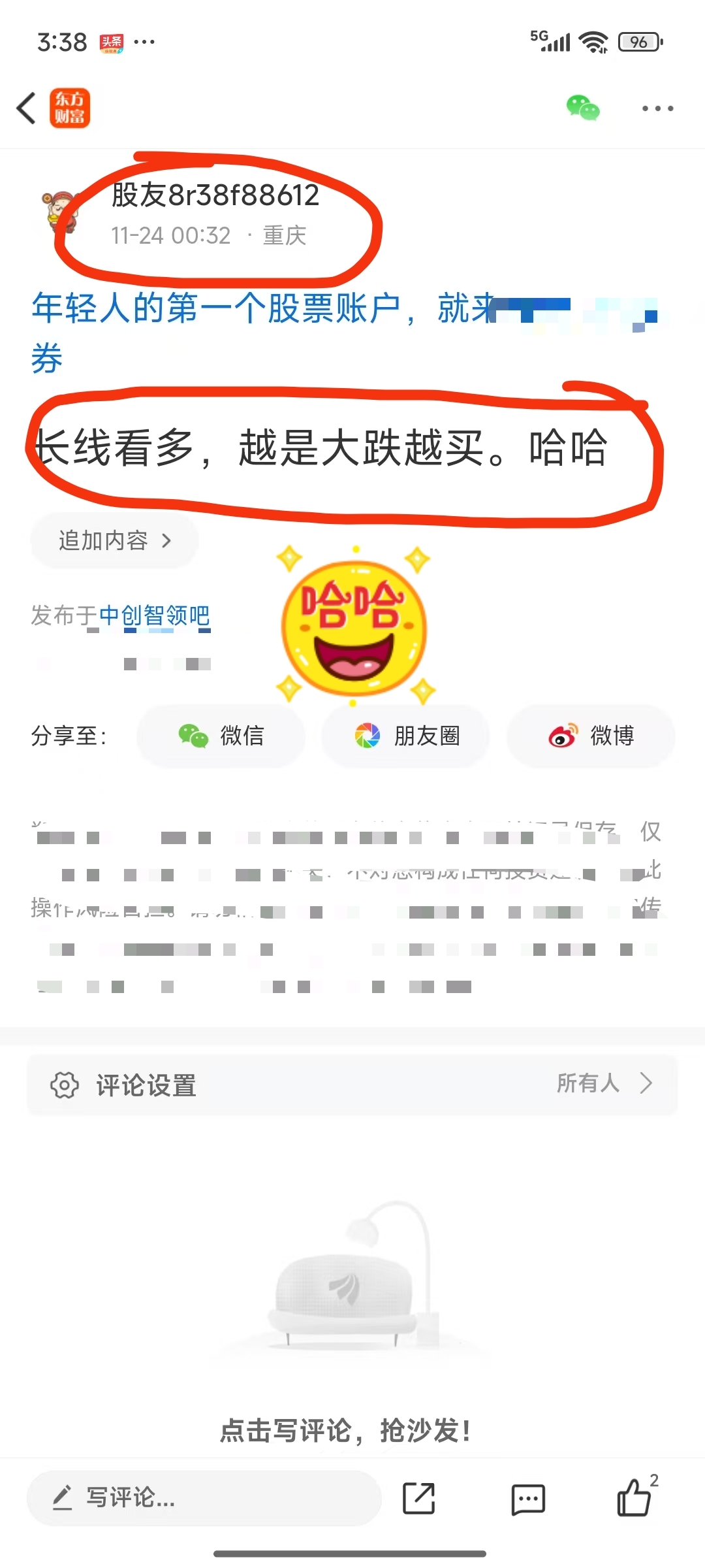 郑重声明:用户在财富号/股吧/博客等社区发表的所有信息(包括但不限于文字、视频、音频、数据及图表)仅代表个人观点,与本网站立场无关,不对您构成任何投资建议,据此操作风险自担。请勿相信代客理财、免费荐股和炒股培训等宣传内容,远离非法证券活动。请勿添加发言用户的手机号码、公众号、微博、微信及QQ等信息,谨防上当受骗!