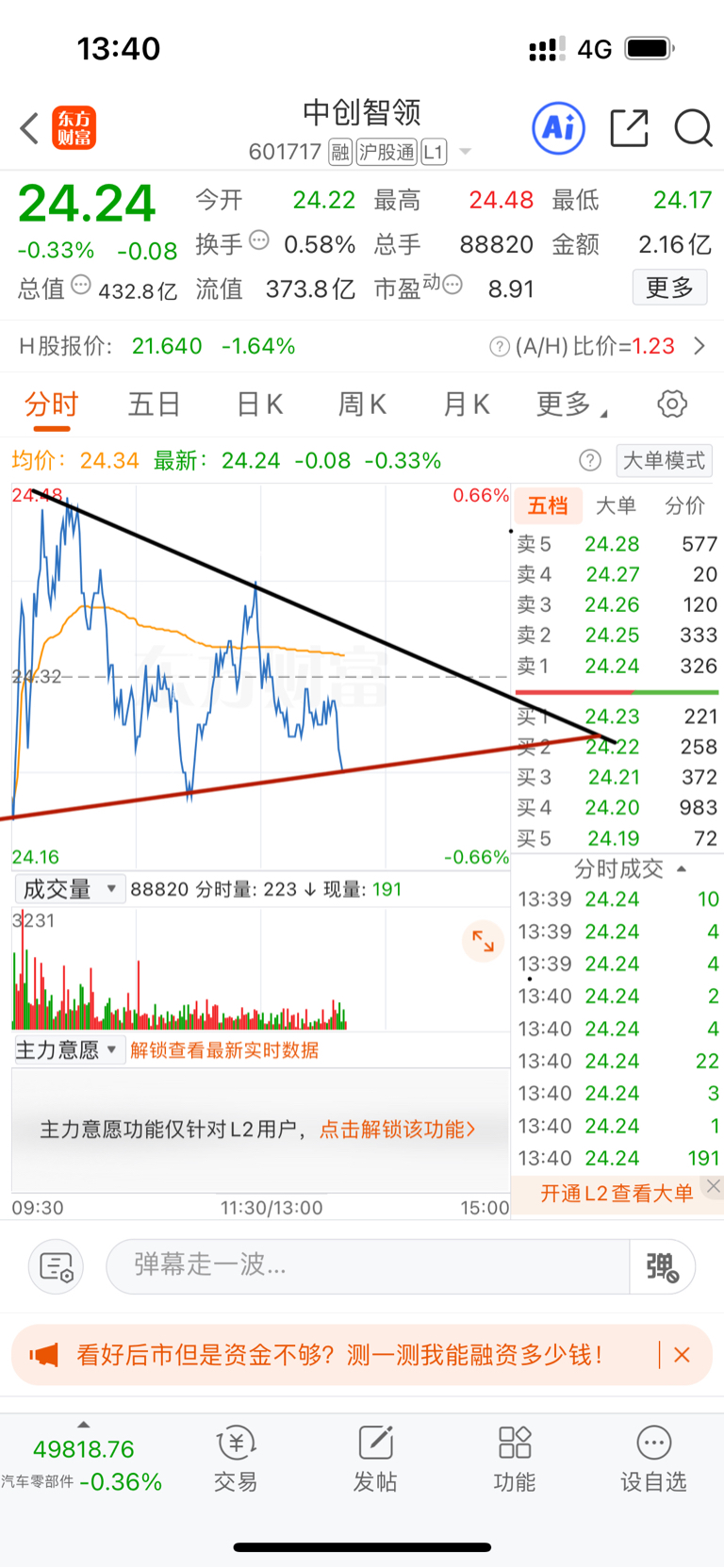 $中创智领(SH601717)$ 收盘必须绿,上周红了4天,这周必须绿三天以上,打到缺口位置