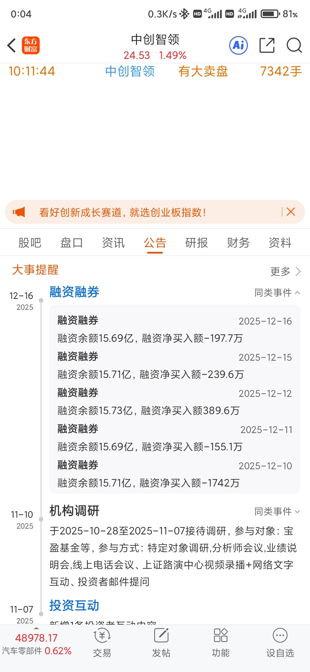 融资开始做空,上周线涨0.08%,这周线还亏0.45%,12月5号也是当天下午受