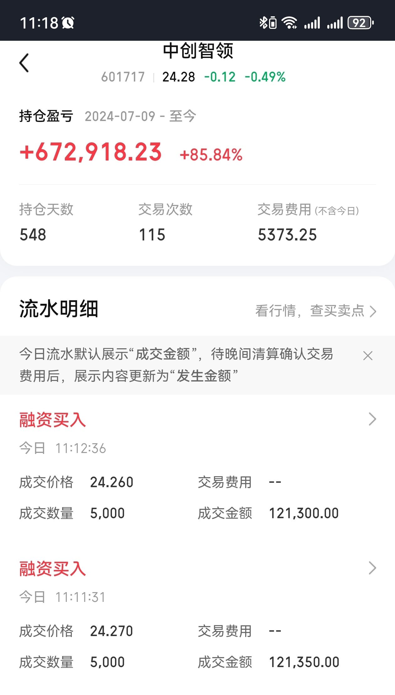 $中创智领(SH601717)$ 小加一万股,成本破十块了
