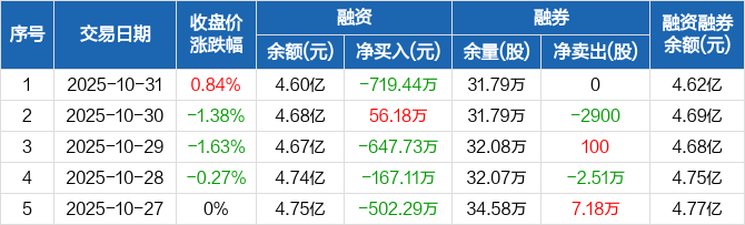 际华集团:融资净偿还719.44万元,融资余额4.6亿元(10-31)