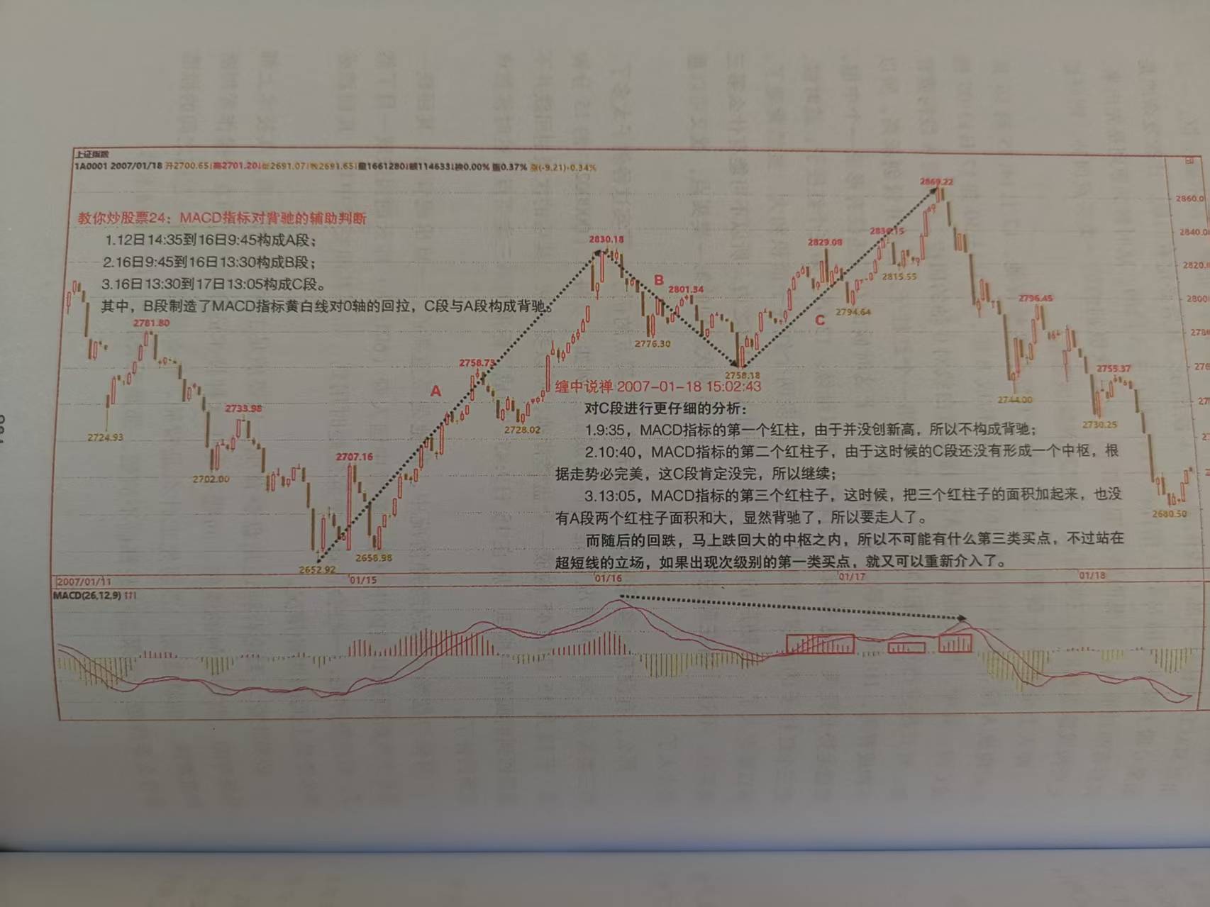 MACD辅助判断背驰经典案列:MACD指标判断背驰,首先要有两段同向的趋势,同向趋势之间有一个盘整或者反向趋势连接,把这三段分别称为 a,B/b,c。B/b段的中枢级别比a段和c段的中枢级别要大。