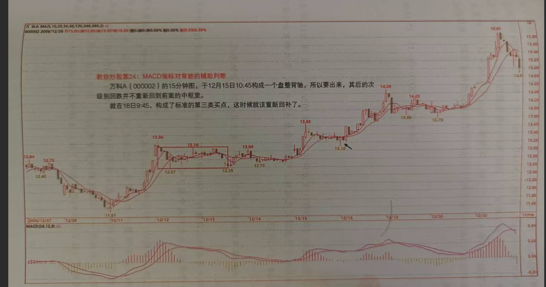 提问:为何13.65明明背驰后,线段不仅没结束,反而涨的更高呢?!能看懂才是真的明白如何用MACD看该级别走势的(最大级别)背驰,1卖!