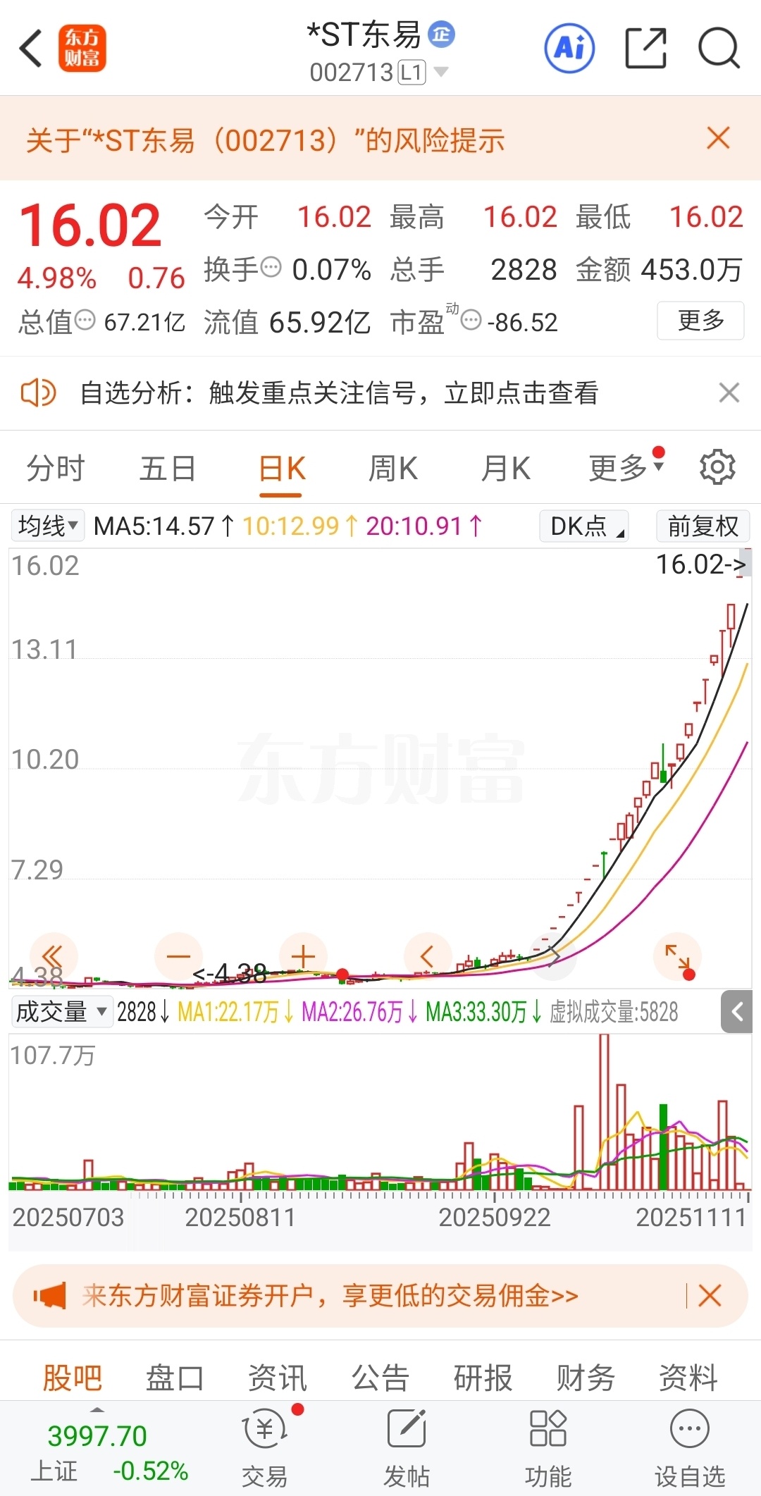 温馨提示: 1.根据《证券法》规定,禁止编造、传播虚假信息或者误导性信息,扰乱证券市场;2.用户在本社区发表的所有资料、言论等仅代表个人观点,与本网站立场无关,不对您构成任何投资建议。用户应基于自己的独立判断,自行决定证券投资并承担相应风险。《东方财富社区管理规定》