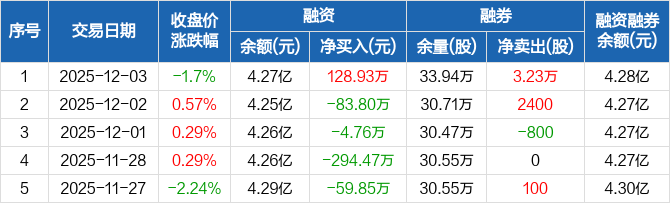 际华集团:融资净买入128.93万元,融资余额4.27亿元(12-03)