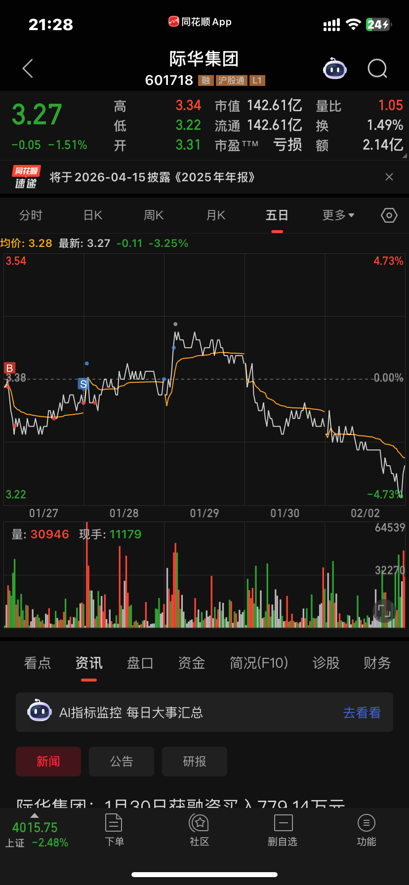 $际华集团(SH601718)$ 赚了一个多点,清仓打野,居然跑在最高点,明天看看有没有回归的机会