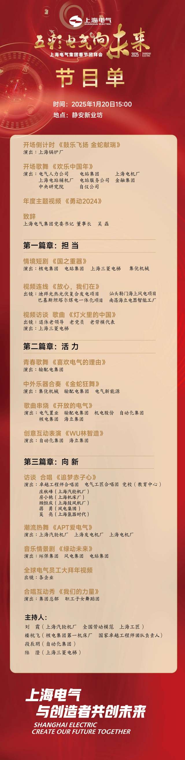 上海电气集团春节团拜会节目单。哈哈哈哈特别对得起各位韭菜这家伙名下企业倒是比较多