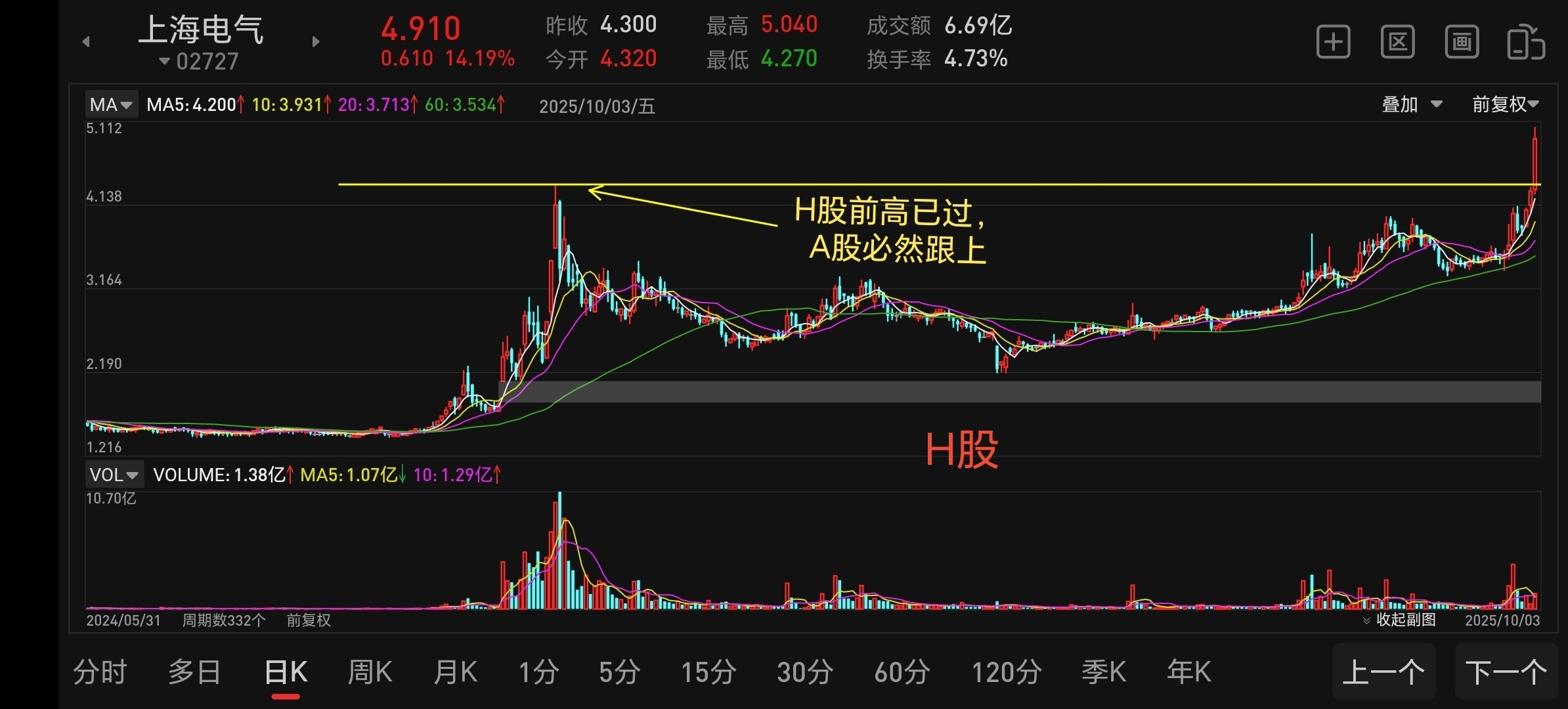 $上海电气(SH601727)$ 看看H股走势就知道节后咋走了,暗盘资金不是白进的,第一张图前两天发过,就喜欢上海本地股 ,大气.