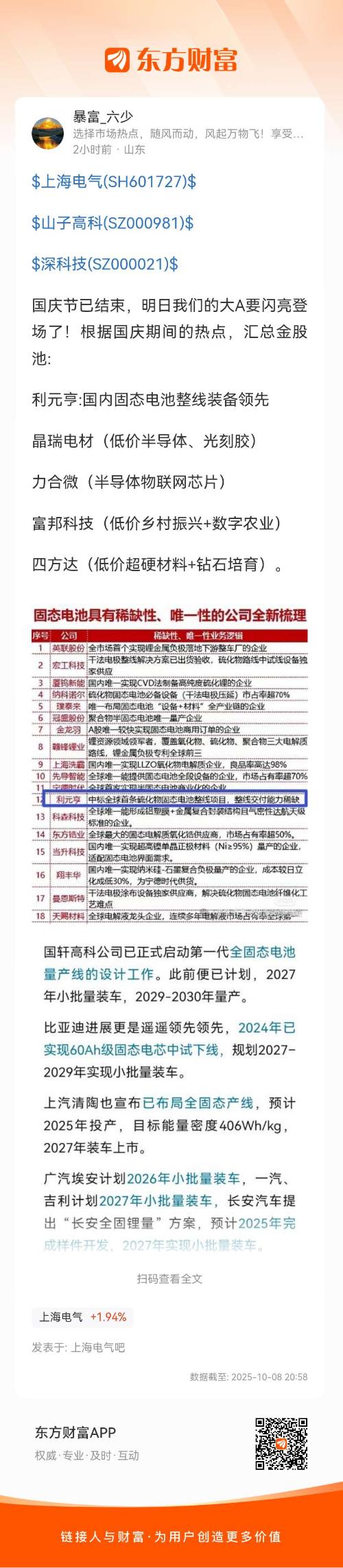 国庆节已结束,明日我们的大A要闪亮登场了!根据国庆期间的热点,汇总金股池:
