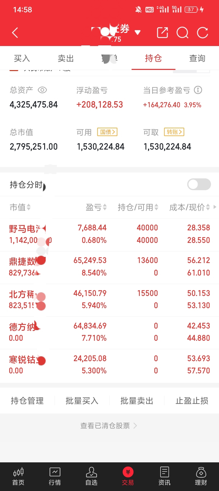 4. 持仓坚守:野马电池今天终于迎来曙光,希望接下来能乘势而上,再冲一波!